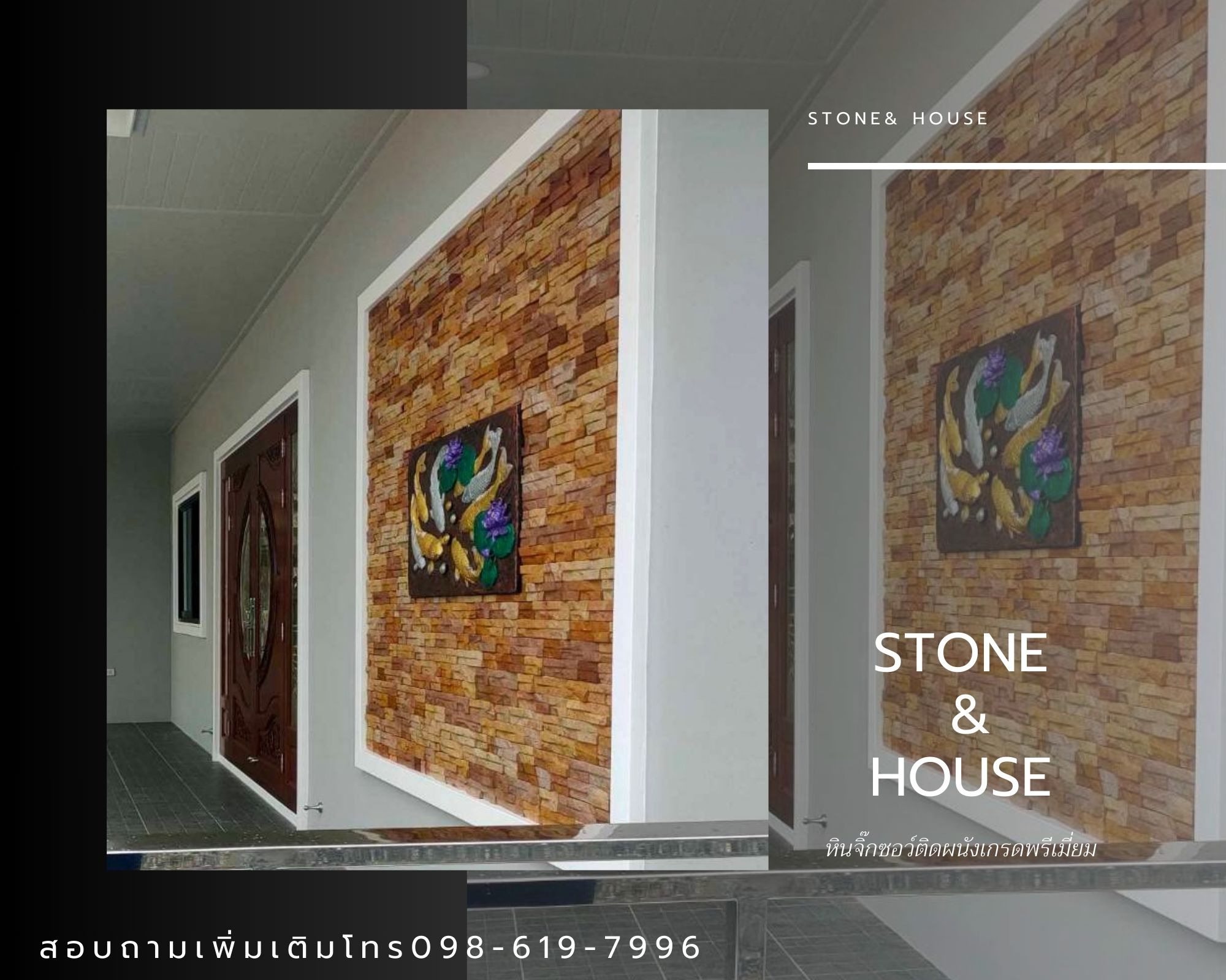 หินทรายโทนสีเหลืองผสมลายติดผนัง
